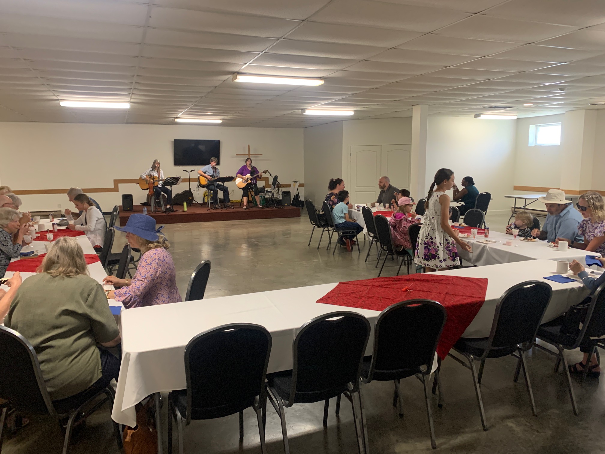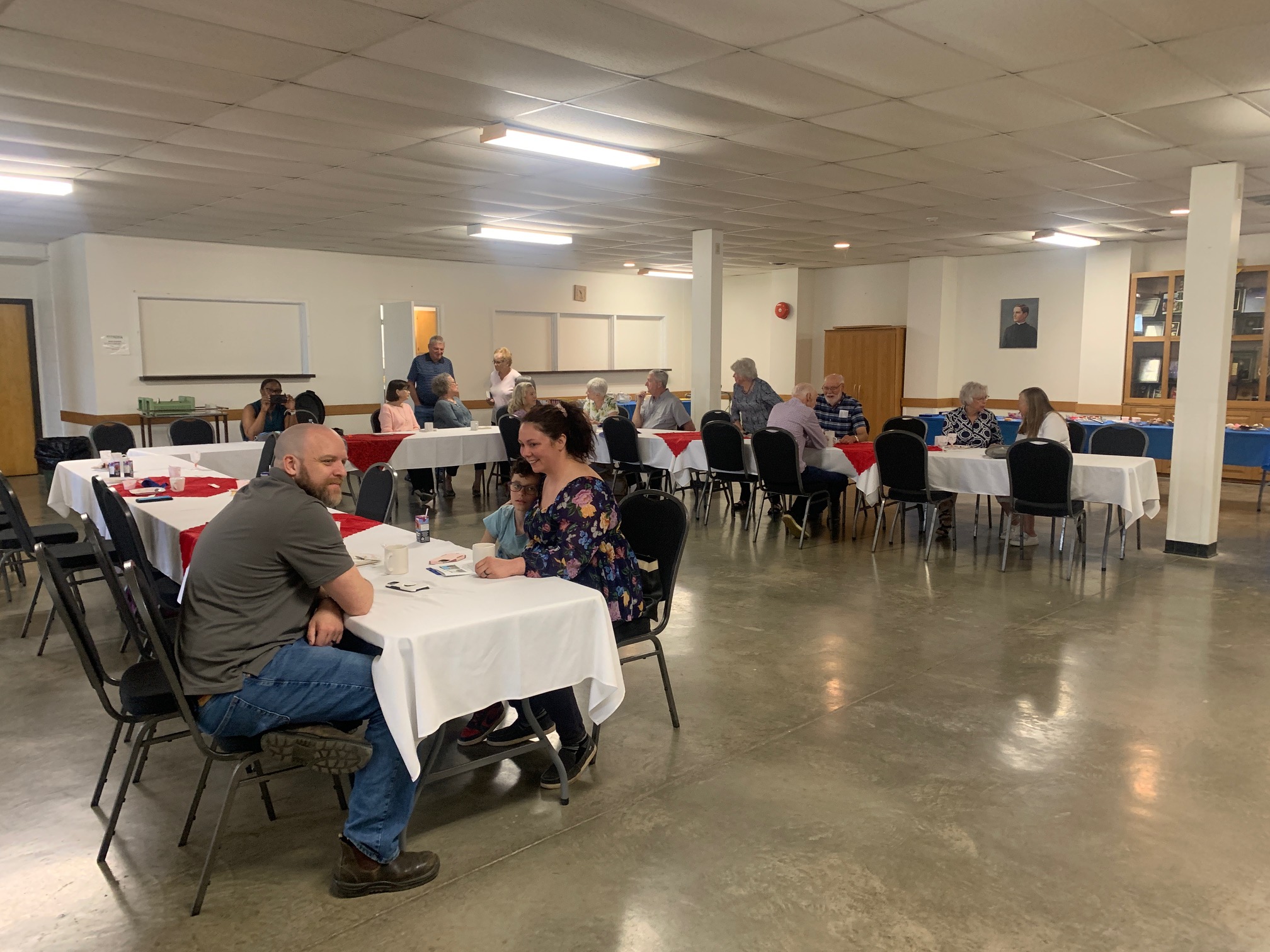 Weekday Mass attendants enjoying breakfast together after Mass!